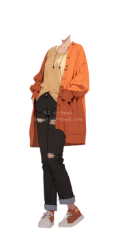 【透過素材】秋服/女性50枚(立ち絵作成用・カーディガン、パーカー、ジャケット、ドレスシャツ、セーター、デニム、スカート、エプロン)