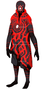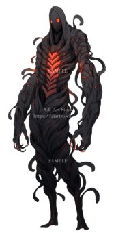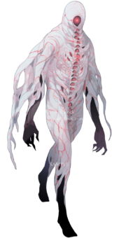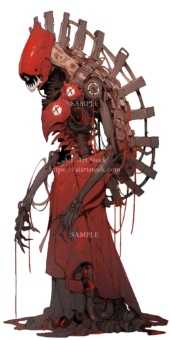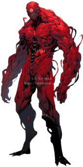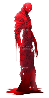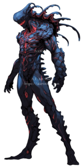 怪物素材の彩度を落とす&明度を落とす&色相を背景のメインとなる色に合わせて赤色をのせて完成↓