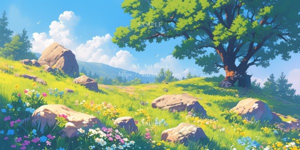 森・草原・砂漠の風景イラスト素材を以下のサイトで販売しています。