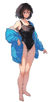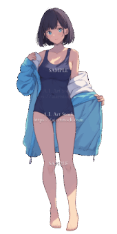 【透過素材】立ち絵・水着/女性110枚(ビキニ、競泳水着、シャツ)