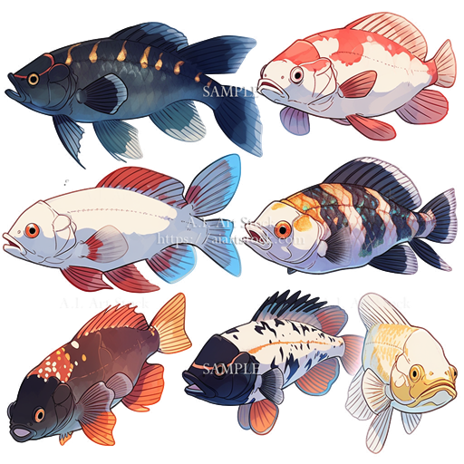 【透過素材】魚・水生生物 / Fish 当ページは有料の素材のサンプルを確認するためのページです。 背景透過の銃のイラスト素材を以下のサイトで販売しています。 【透過素材】魚・水生生物 210枚 ⇒A.I. Art Stock STOREで購入 ⇒BOOTHで購入 熱帯魚のベタだけを集めた素材集はこちら↓ ※ページサイズの制限のため、サンプルの解像度は半分の大きさになっております。 サムネをクリックして画像を表示し、上下にドラッグすると透過されているのを確認できます。 ▼ サンプル ▼